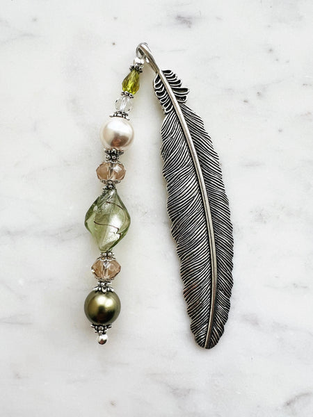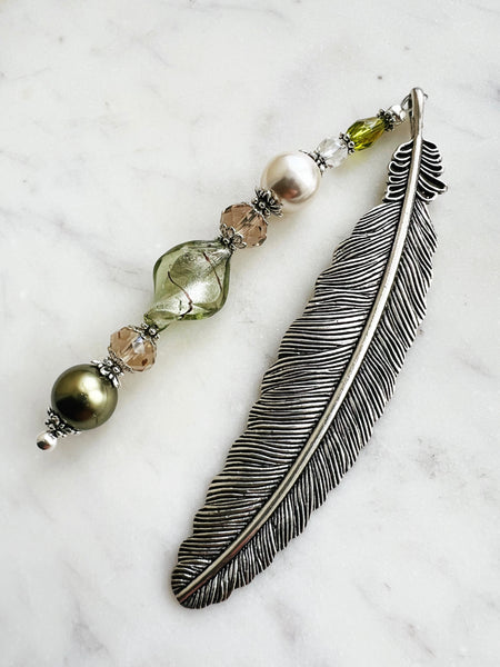 Vintage Feather Bookmark โ€“ Repurposed Vintage Beads & Tibetan Silver