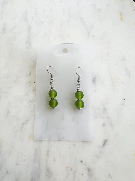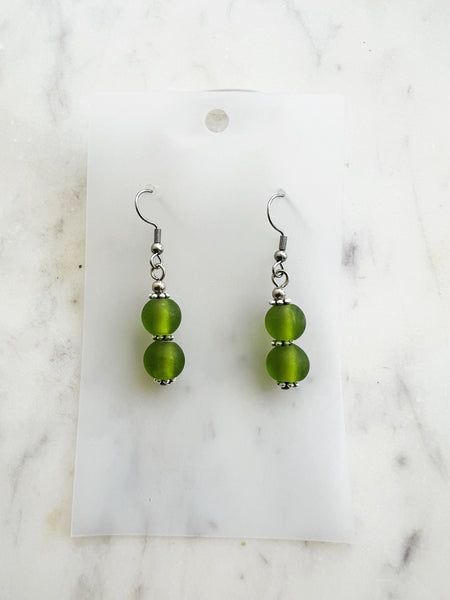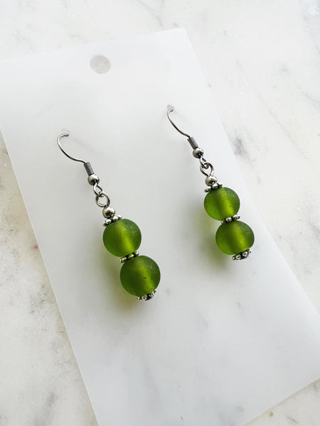 ๐Ÿƒ Frosted Green Vintage Glass Bead Earrings (Hypoallergenic Hooks)