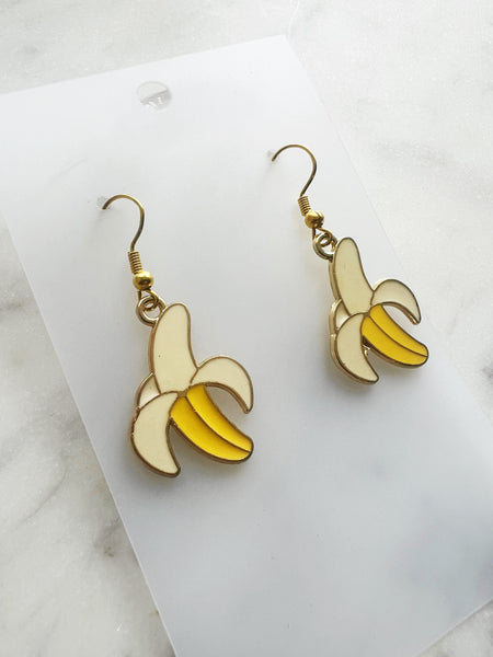 🍌 Kawaii Enamel Banana Dangle Earrings – Fun Fruit Earrings