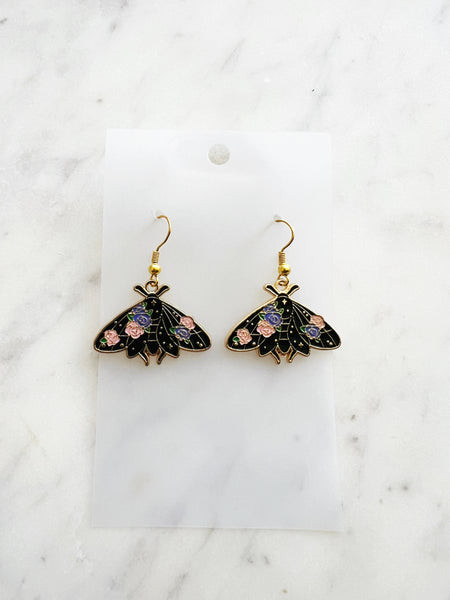 🦋 Kawaii Enamel Moth Dangle Earrings