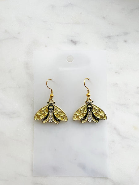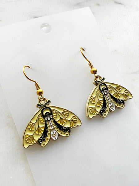 🦋 Kawaii Enamel Pastel Yellow Moth Dangle Earrings – Decorative Wing Design
