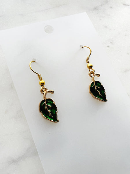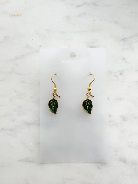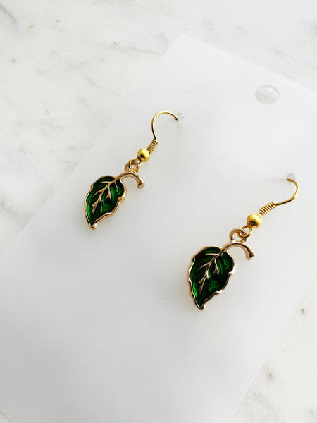 🌿 Kawaii Enamel Green Leaf Dangle Earrings