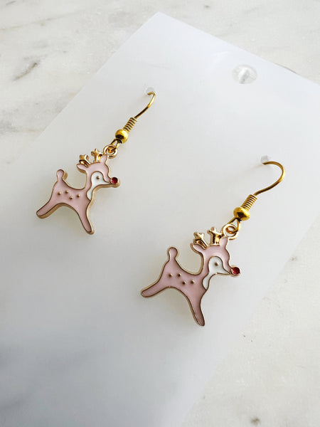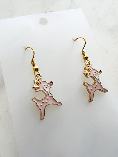 🦌 Kawaii Enamel Reindeer Dangle Earrings