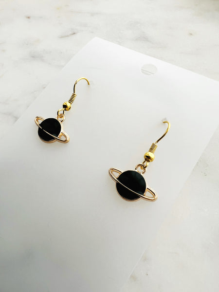 Shoot for the stars with these celestial Enamel Planet Earrings โ a dreamy design perfect for space lovers and stargazers alike! Featuring glossy black enamel planets with shimmering gold-tone rings, these earrings bring a touch of cosmic charm to your look.