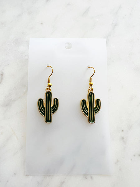 🌵 Kawaii Enamel Dark Green Cactus Dangle Earrings
