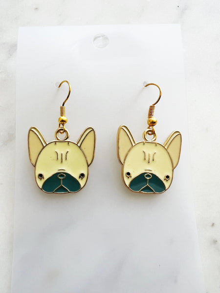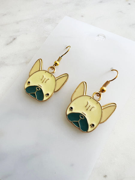 Style: Kawaii enamel French Bulldog dangle earrings